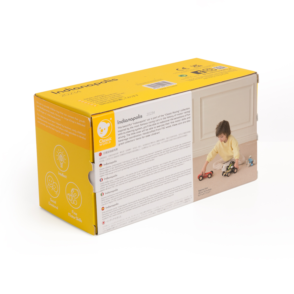 Αυτό το πανέμορφο αυτοκίνητο "Indianapolis" ανήκει στη συλλογή "Classic Racing", εμπνευσμένη από τα πιο διάσημα αυτοκίνητα στην ιστορία των αγώνων ταχύτητας! Χάρη στο σύστημα διεύθυνσης, τα παιδιά θα βιώσουν την απόλαυση της οδήγησης με διασκεδαστικό τρόπο. Οι μικροί οδηγοί θα αναπτύξουν τις λεπτές κινητικές τους δεξιότητες και τον οπτικοκινητικό συντονισμό. Το όχημα είναι χειροποίητο και φέρει την ένδειξη από ξύλο FSC, ενώ αποτελεί επίσης ένα εξαιρετικό συλλεκτικό κομμάτι για μεγαλύτερα παιδιά ή λάτρεις των κλασικών αυτοκινήτων.