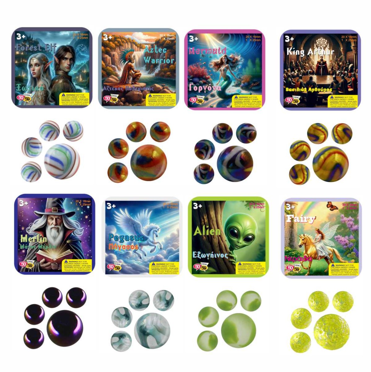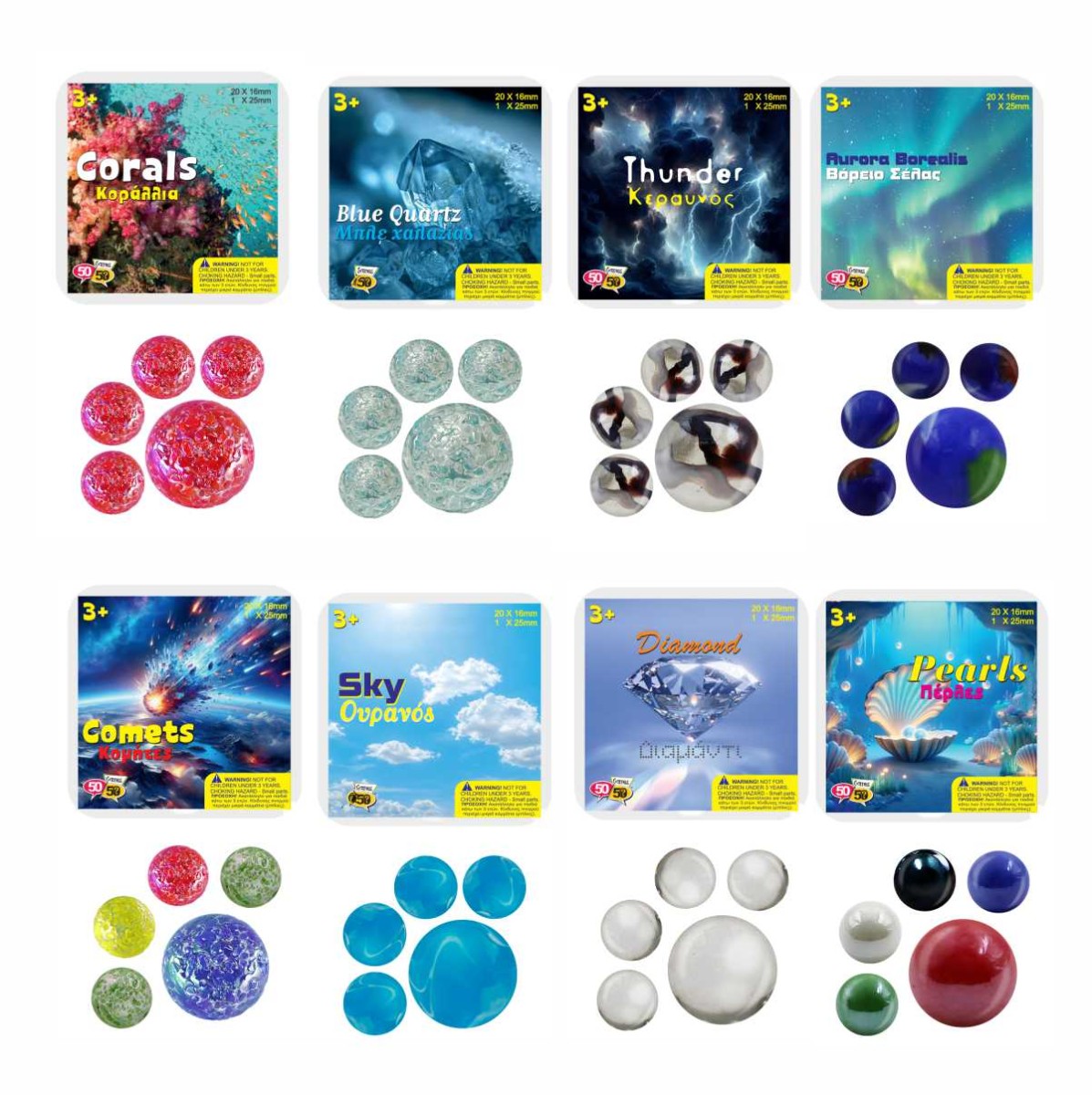 Ανακάλυψε έναν μαγικό κόσμο γεμάτο χρώμα και φαντασία μέσα από μια εκπληκτική συλλογή βόλων από 100% γυαλί! Μάζεψέ τα όλα και ζήσε ξανά τη μαγεία του κλασικού παιχνιδιού!