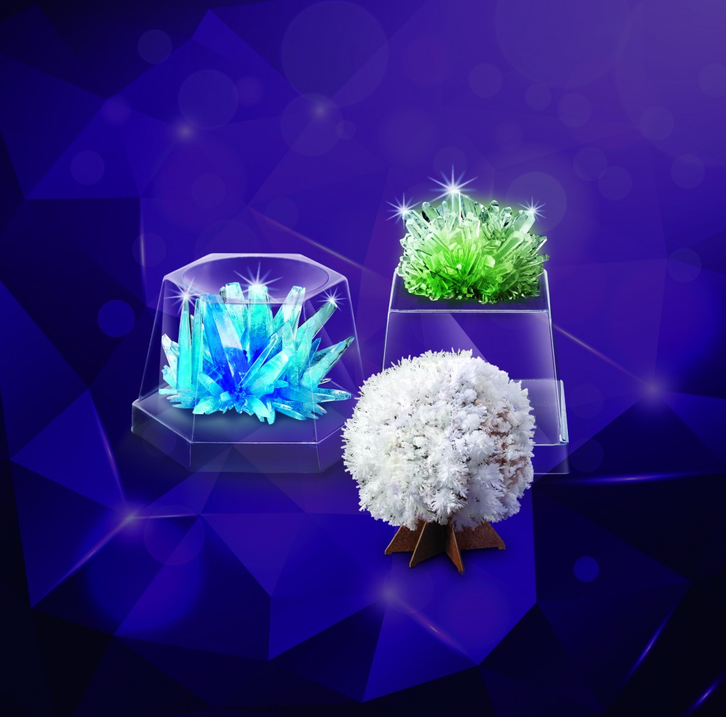 Κάνε μια σειρά από χημικά πειράματα και δημιούργησε το δικό σου Κρύσταλλο Ακουαμαρίνη, μία Κρυσταλλική Φεγγαρόπετρα που φωσφορίζει και ένα Κρυσταλλικό Δέντρο. Μάθε πως δημιουργούνται οι κρύσταλλοι από διαλύματα. Κάνε τη δική σου συλλογή και διακόσμησε το δωμάτιό σου! Διάβασε τα ψυχαγωγικά στοιχεία που περιλαμβάνονται στις οδηγίες και μάθε ενδιαφέρουσες πληροφορίες για τους κρυστάλλους.